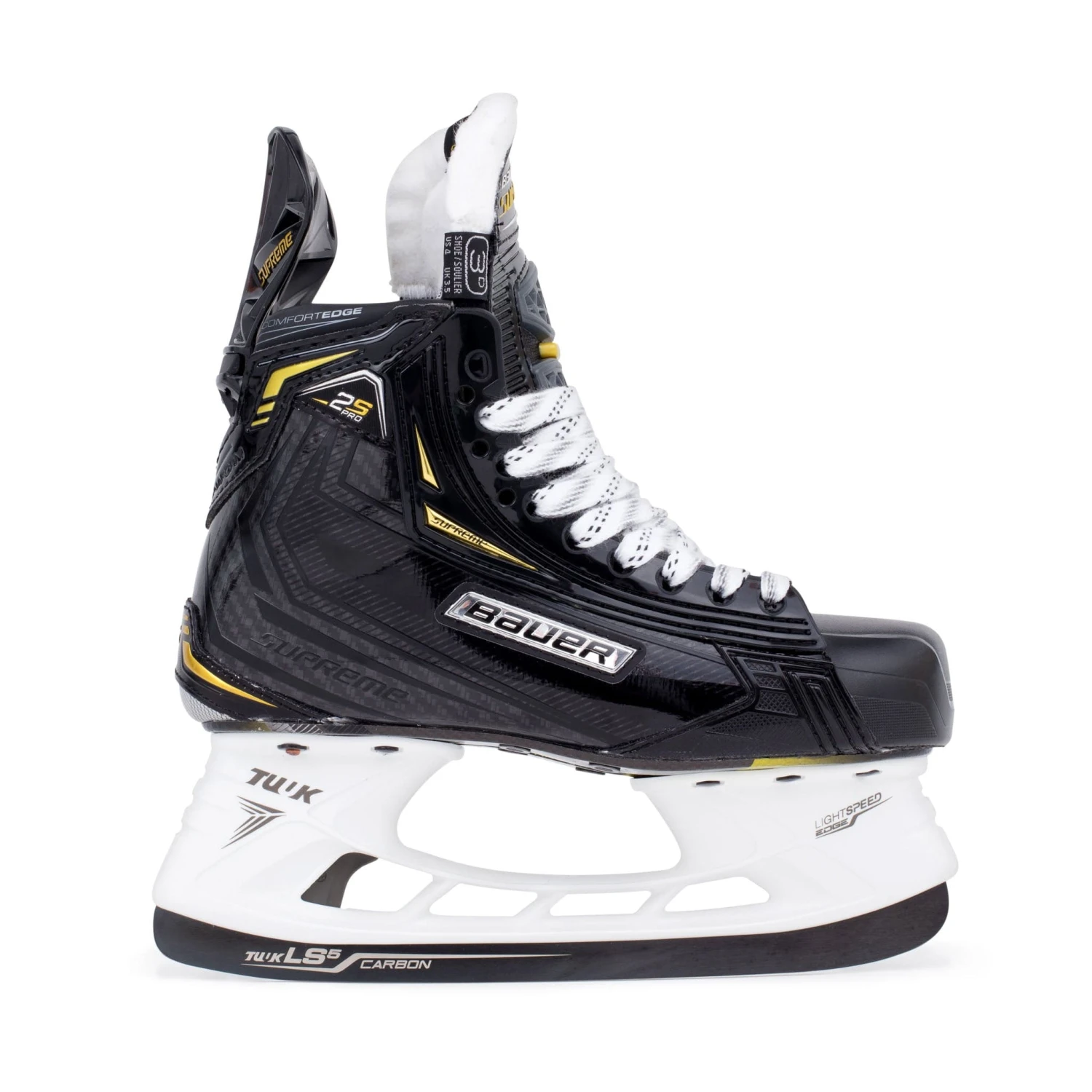 The Bauer 2S Pro is the first player skate to feature LS5 Carbon-coated steel. This is something we have been eagerly waiting for Bauer to release. For years we’ve been aware of the benefits that carbon-coated steel offers, and it was only a matter of time before this material was stock on elite skates.