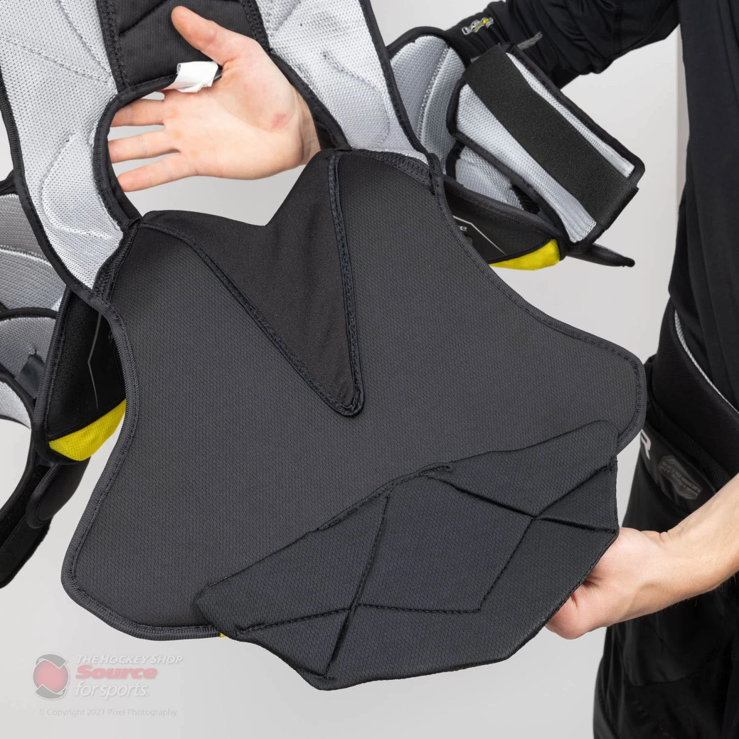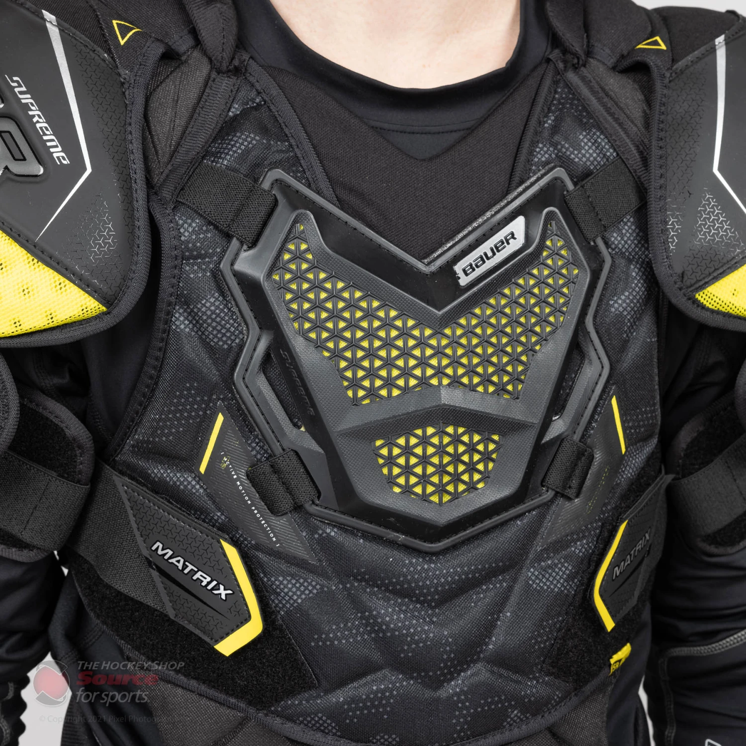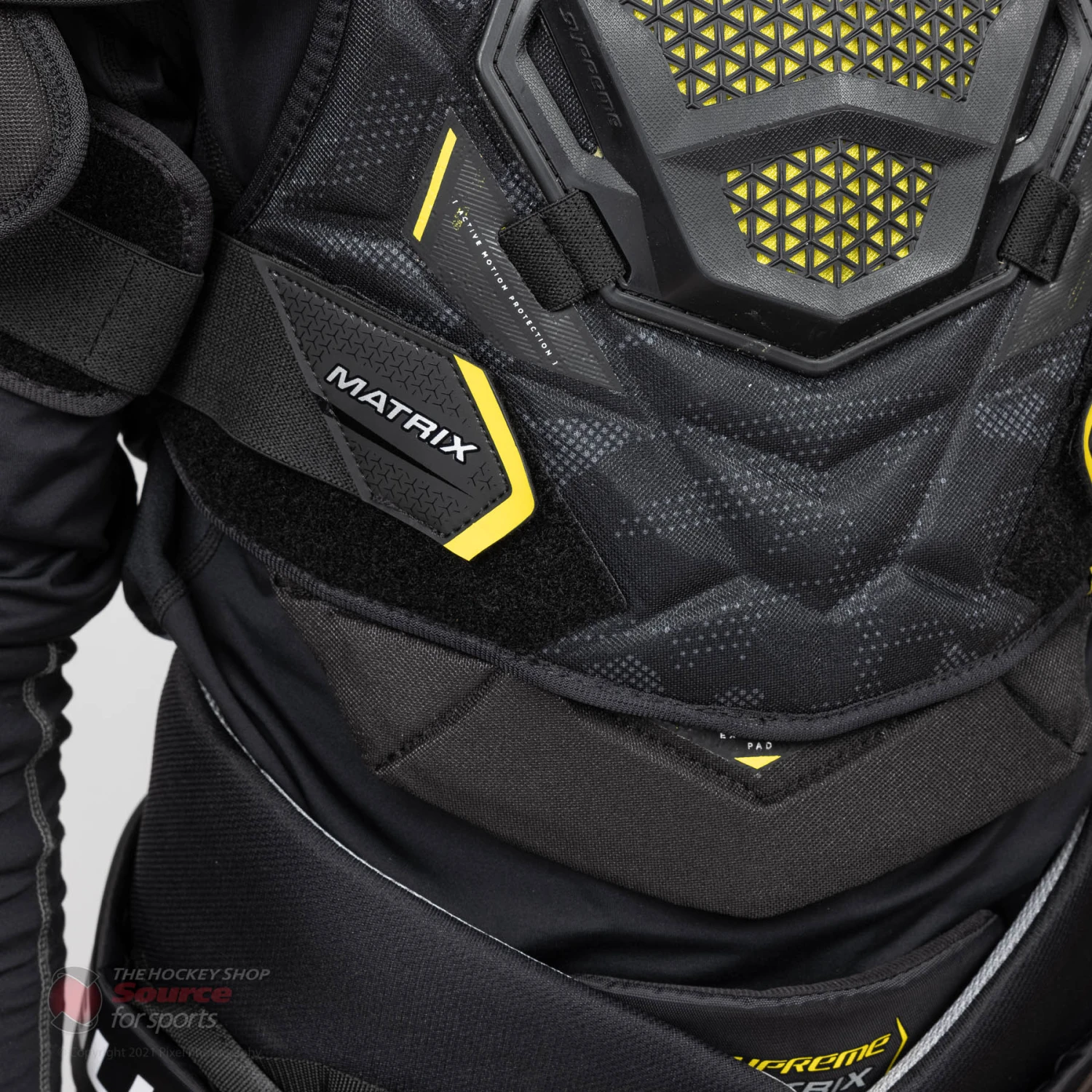 The Bauer Matrix offers low profile molded shoulder caps. They also feature Bauer’s new Active Motion Protection (AMP) technology with Vented Armour Foam that allows the shoulder cap to move with you. The low profile keeps you agile and quick on the ice while still protecting you from high impacts.