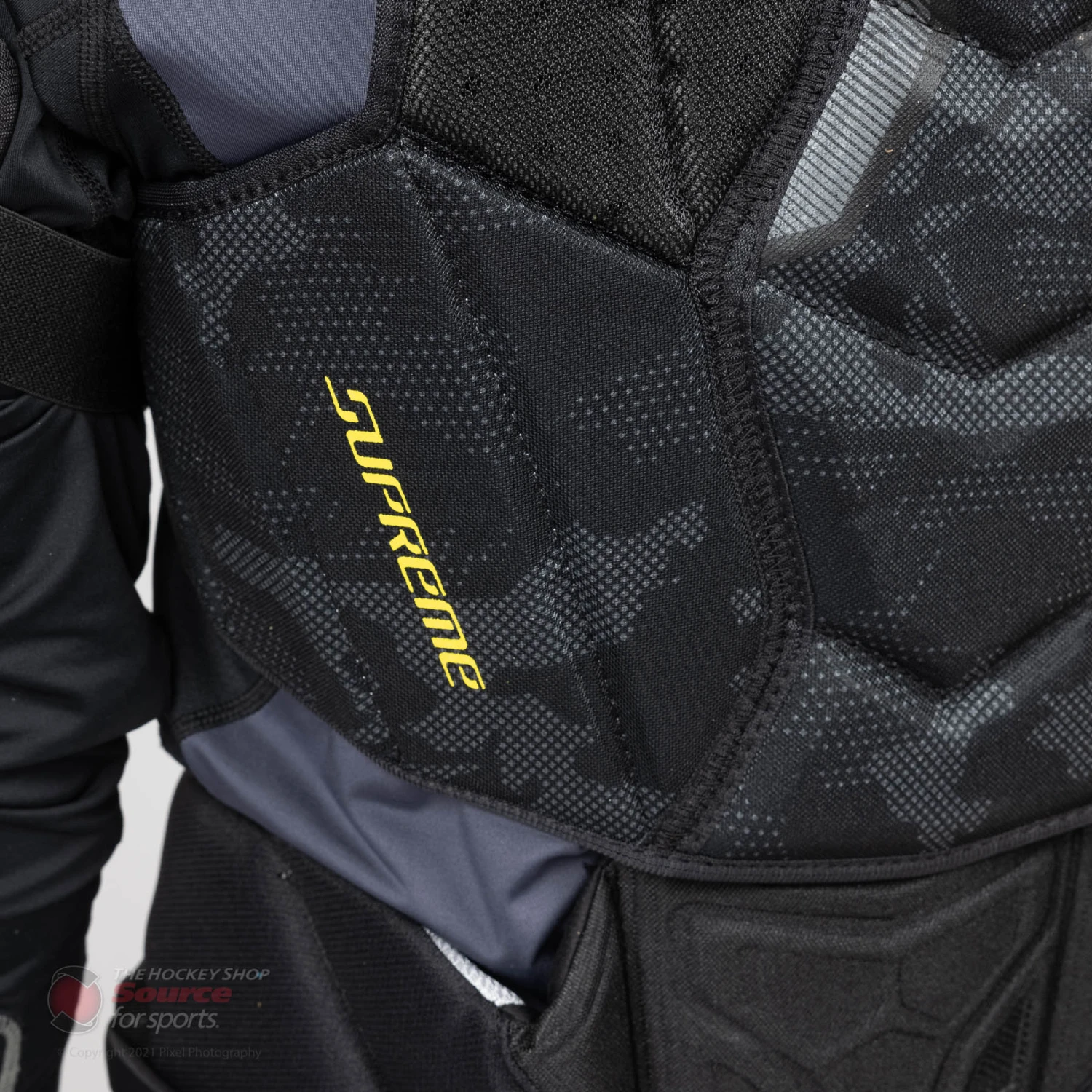 The Supreme Matrix shoulder pad features an adjustable split bicep that is also found on the UltraSonic. The AMP technology design within the bicep pieces has no restriction in movement and allows you to have a full range of motion on the ice.