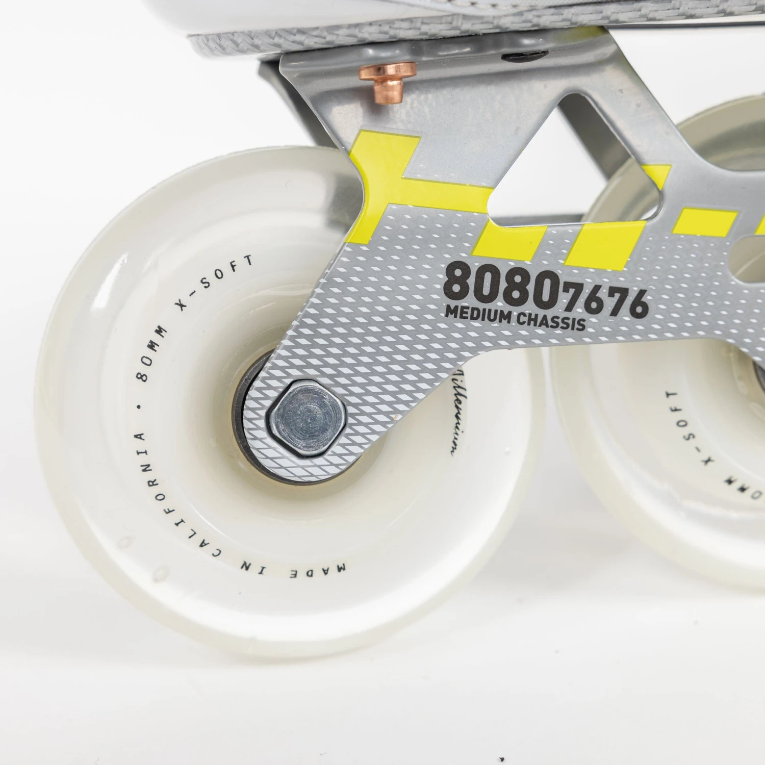 The Vapor 3X Pro comes with Labeda Millenium wheels, which offer amazing grip and speed. They are a bit harder than traditional x-soft wheels but offer the same performance with increased durability. This is a soft wheel, which is ideal for indoor, smooth flooring; if you plan to play outdoors, it is recommended that you opt for outdoor wheels.
