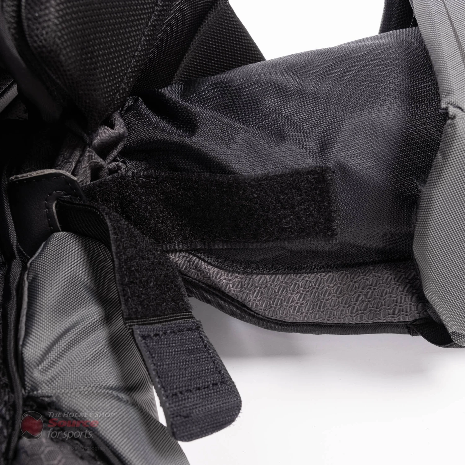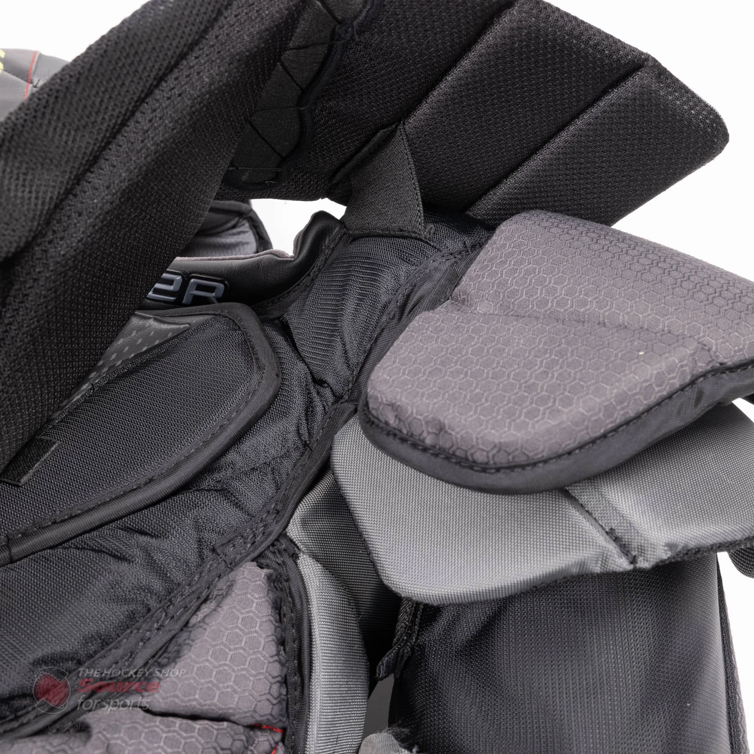 Bauer uses a molded Fused Composite with CURV reinforcement that wraps around the arm, the elbow floaters use the same Dynamic 3 Flex system that was seen on the 2X Pro with added Curv for increased protection. The molded arms now wrap further around offering better protection for those areas that were previously left exposed.
