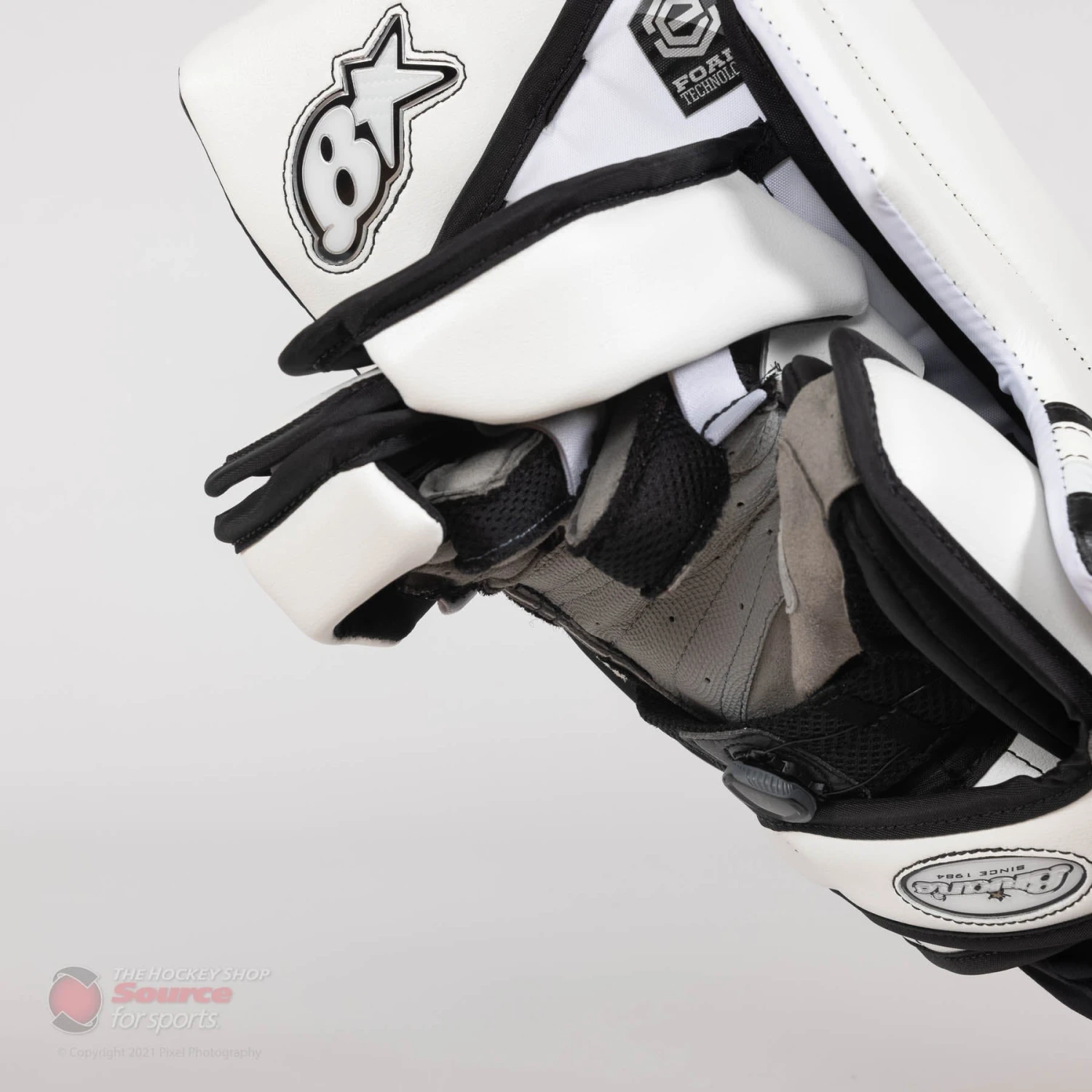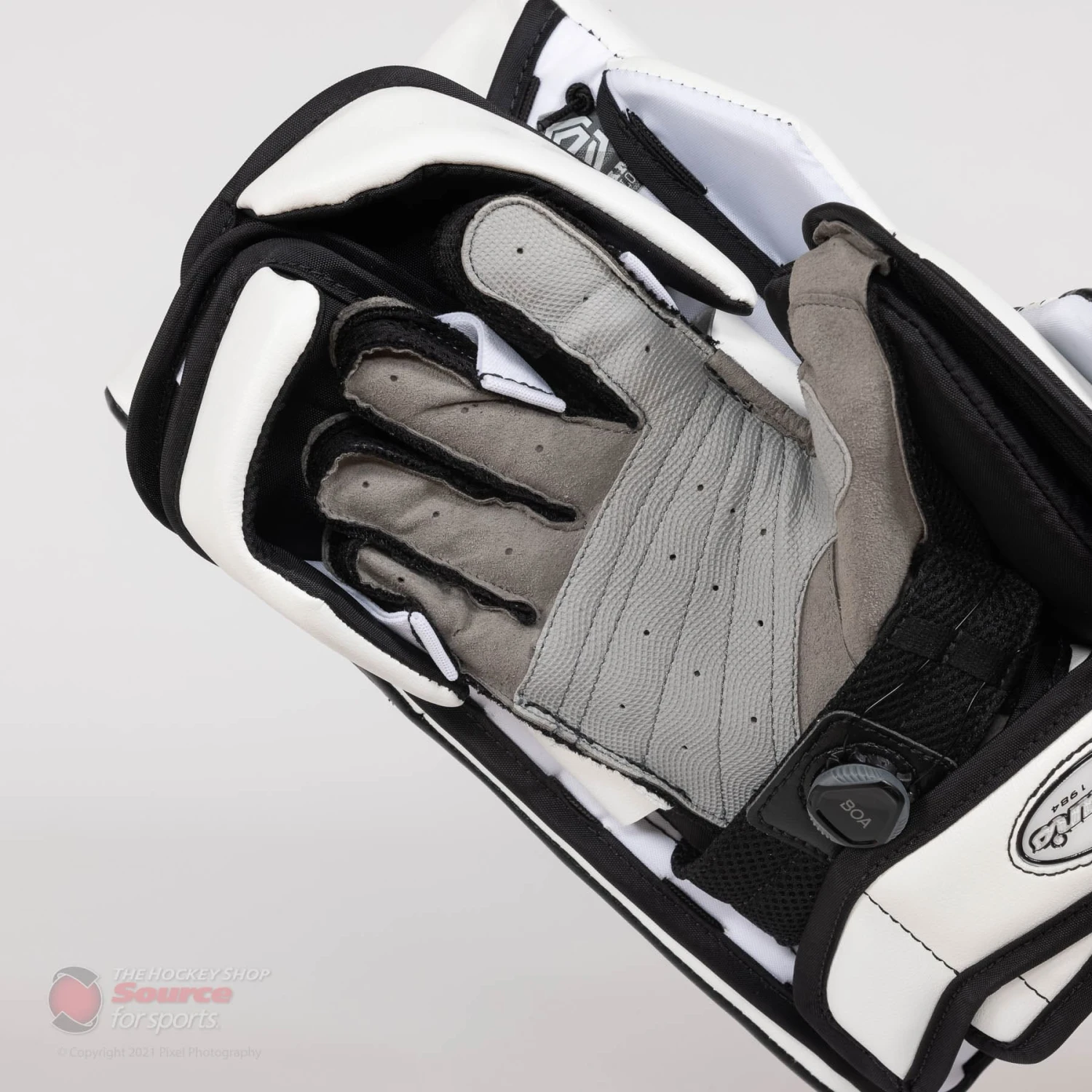 The Brian’s G-NETik V Senior Goalie Blocker incorporates Brian’s new carbon composite Bri-Core to improve rebound explosivity, stiffness, and rigidity. Along with the new graphic, Brian’s continues to use the BOA system to ensure a tight and effective adjustment system. The G-NETik series stands out in its versatility, making it an ideal set for hybrid-style goalies.