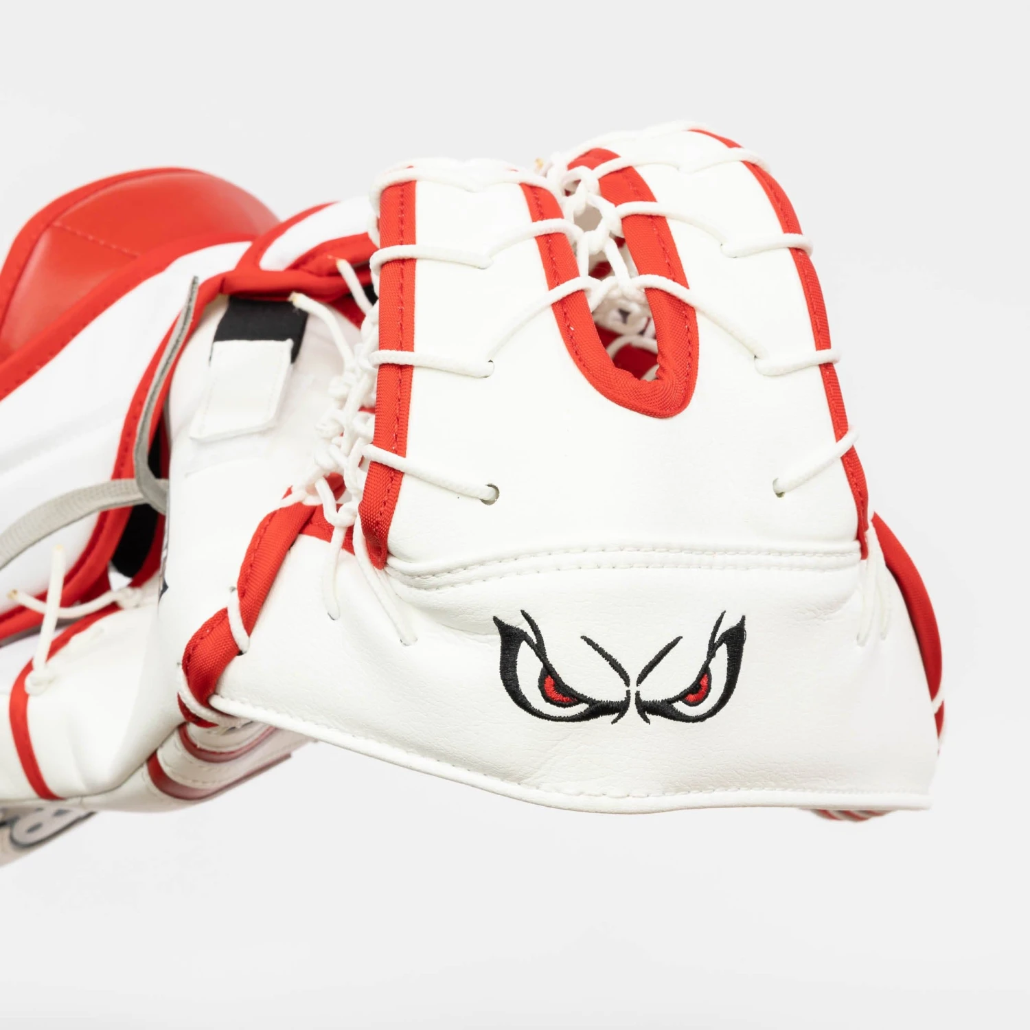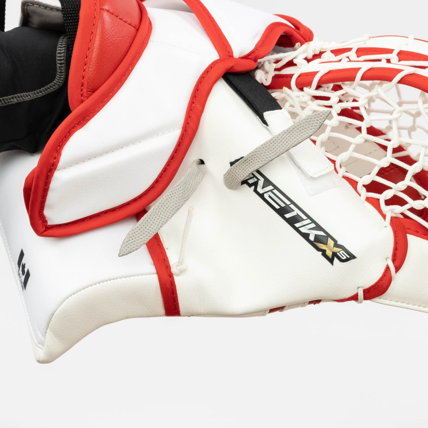 The Brian’s G-NETik X5 Intermediate Goalie Catcher comes in Regular and Full Right configurations, and the following colourways: White, White/Black, White/Black/Red, White/Blue, and White/Red.