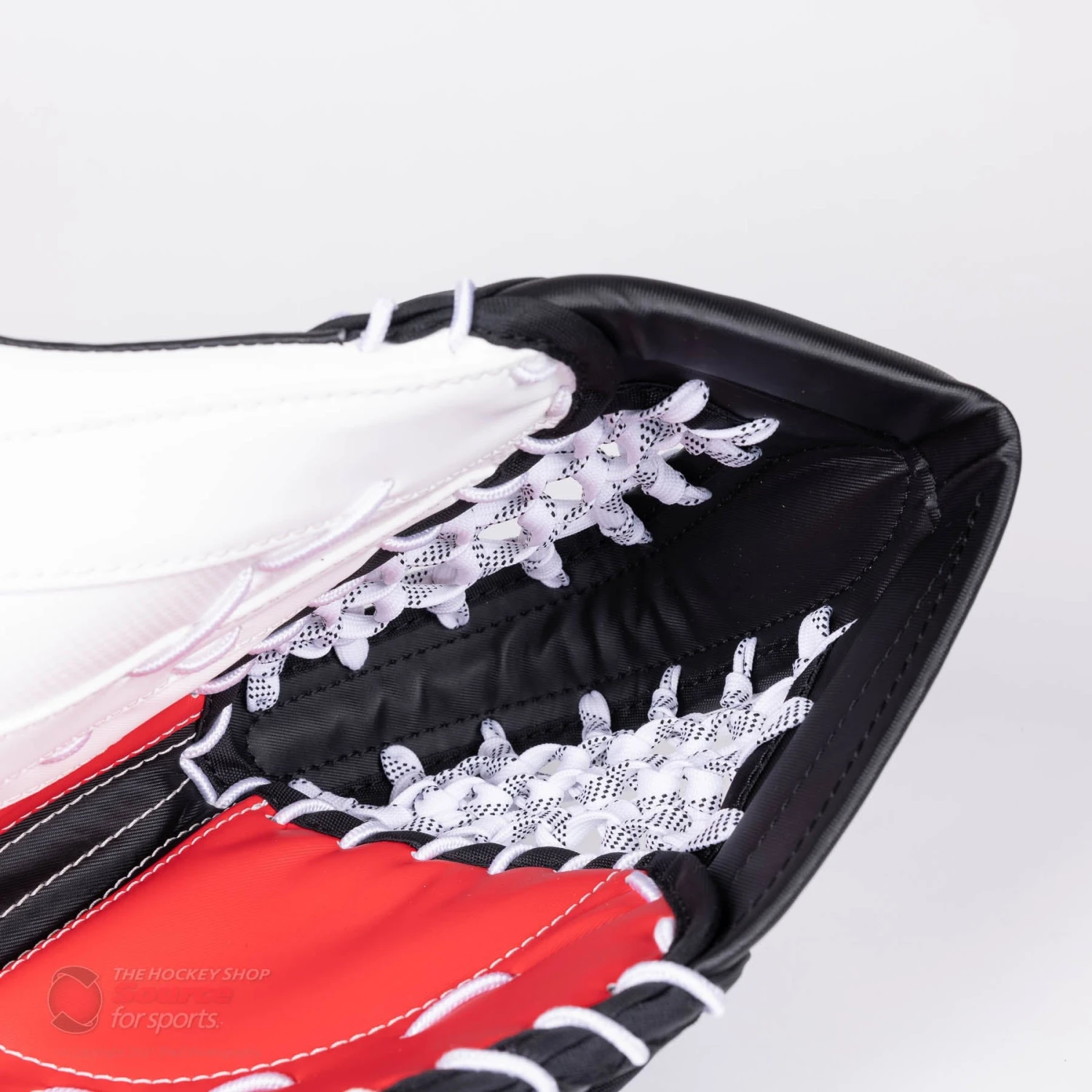 The Source for Sports Exclusive version of the CCM Extreme Flex E5.5 JR Goalie Catcher deliver all the same features as the catalog E5.5 with upgraded specs. These upgraded specs include; a 1” deeper Single-Tee skate lace pocket, CCM’s SureGrip palm with impact-absorbing D30 Smart Foam palm protection, and exclusive colorways that are unique to the Source for Sports family. These spec upgrades respectively provide improved grip and closure, and increased impact absorption through the use of D30 Smart Foam. Pair these upgrades with the FlexMotion backhand and cuff, SpeedSkin material, and a 600 Degree break angle, the E5.5 Source Exclusive offering gives you more “bang-for-your-buck” over the catalog model.