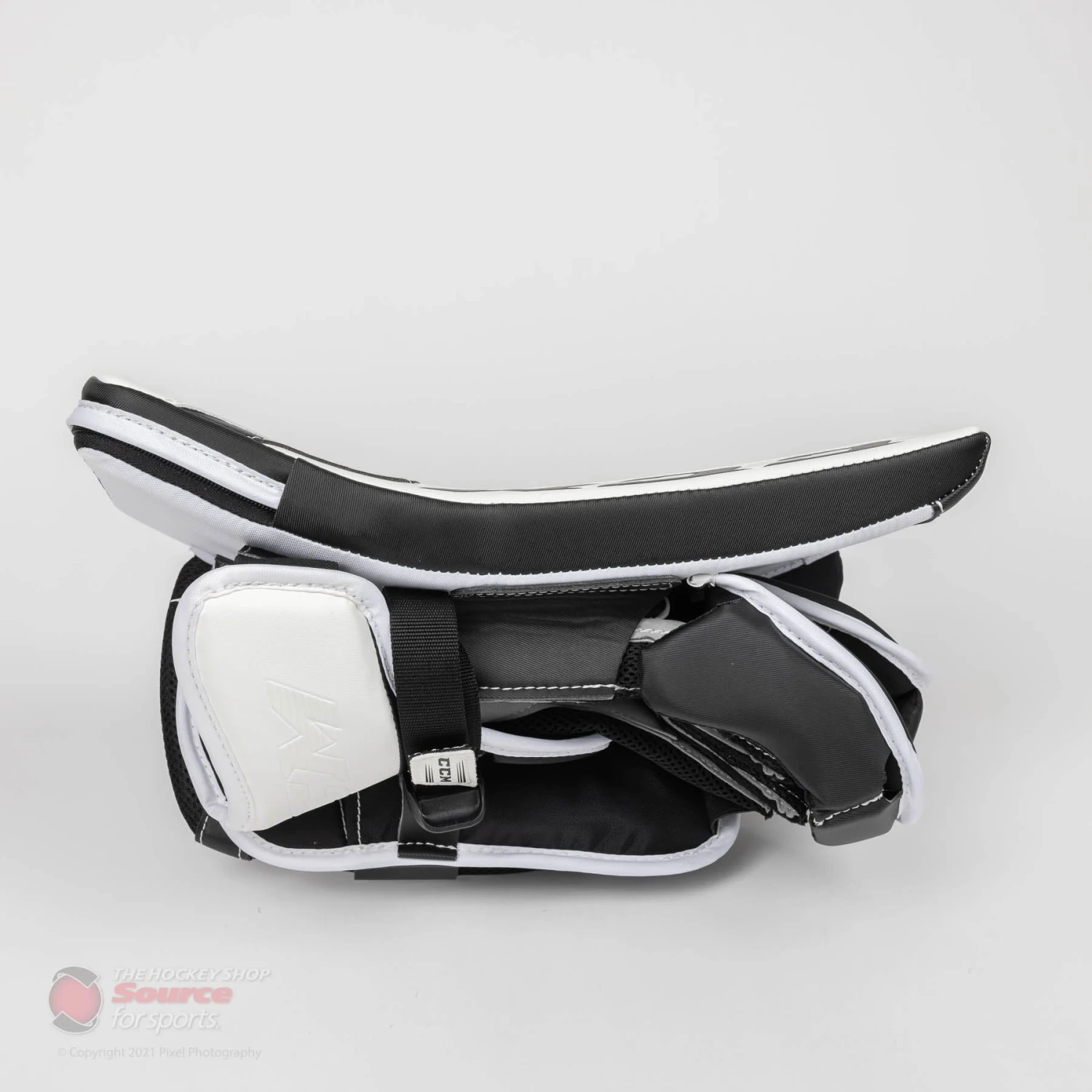 The Source for Sports Exclusive version of the CCM Extreme Flex E5.9 INT Goalie Blocker features all the same features as the catalog E5.9 with upgraded specs. These upgraded specs include; D30 Smart Foam protection on the index finger, Removable finger protection which allows you to customize the fit, and exclusive colorways that are unique to the Source for Sports family. Pair these upgrades with the FlexMotion cuff design, SpeedSkin material, and Nash reinforced palm, the E5.9 Source Exclusive offering gives you more “bang-for-your-buck” over the catalog model.