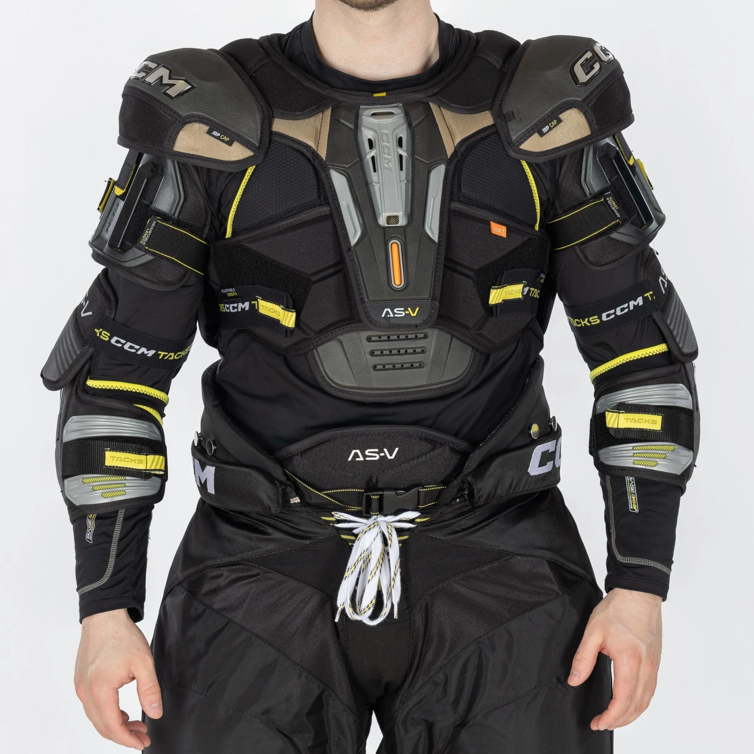 Newly updated from CCM for 2022 is the Tacks AS protective line. The AS-V elbow pads are equipped with many features ideal for players at any level of hockey looking for elite coverage, including D3O foam, ADPTFit, an Anatomical Shield Design, and a molded EVA foam cover. CCM has been further optimizing their ASD construction for this line of protectives to enhance both comfort and coverage.