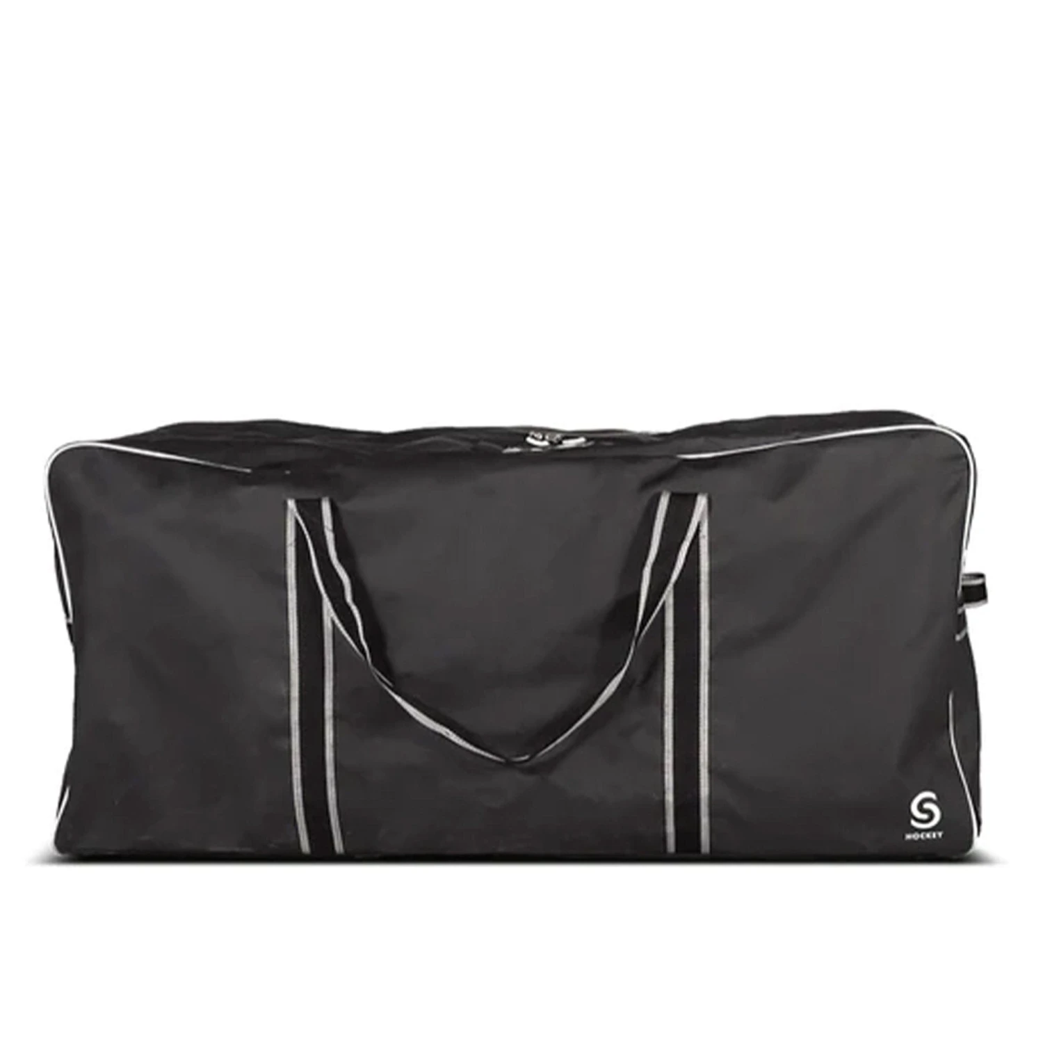 New to this season is the Source For Sports Blackedge Pro Senior Goalie Carry Bag. This bag covers all the bases with its durable tarpaulin construction, large compartment, Durable twill handles with Velcro attachment , and sleek monochrome design.