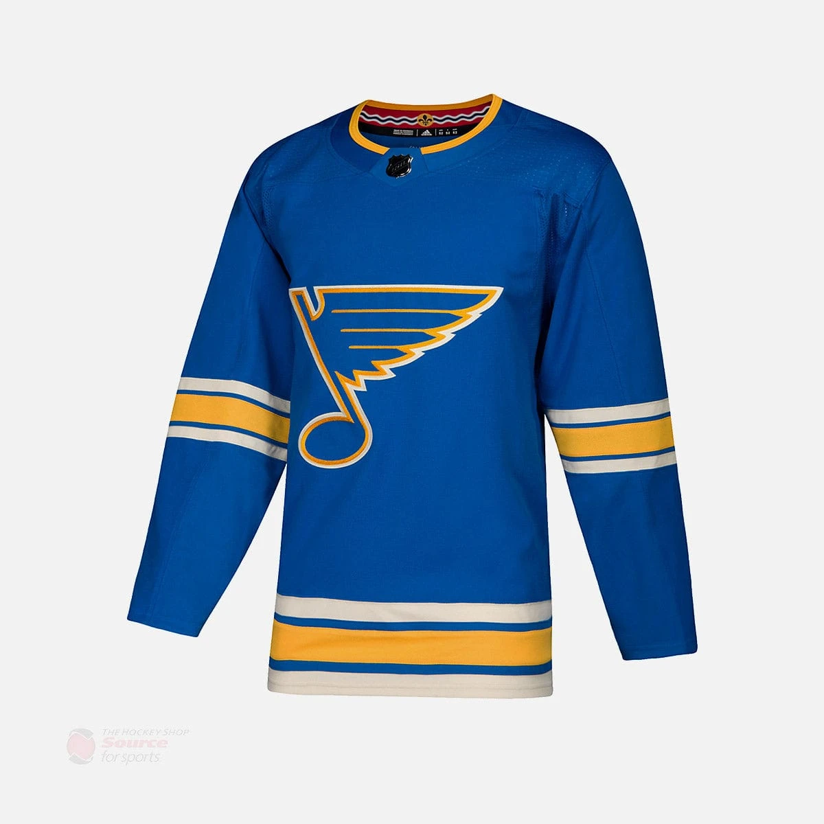 The St. Louis Blues Alternate Adidas Authentic Senior Jersey is an officially licensed jersey of the NHL. The new and improved authentic team jerseys show your devotion to your favourite team, with the addition of the original Adidas climalite technology to maximize mobility and enhance performance. The new touch of the sewn, platinum NHL Shield under the front collar gives these jerseys its finishing touch on becoming the new look of the NHL.