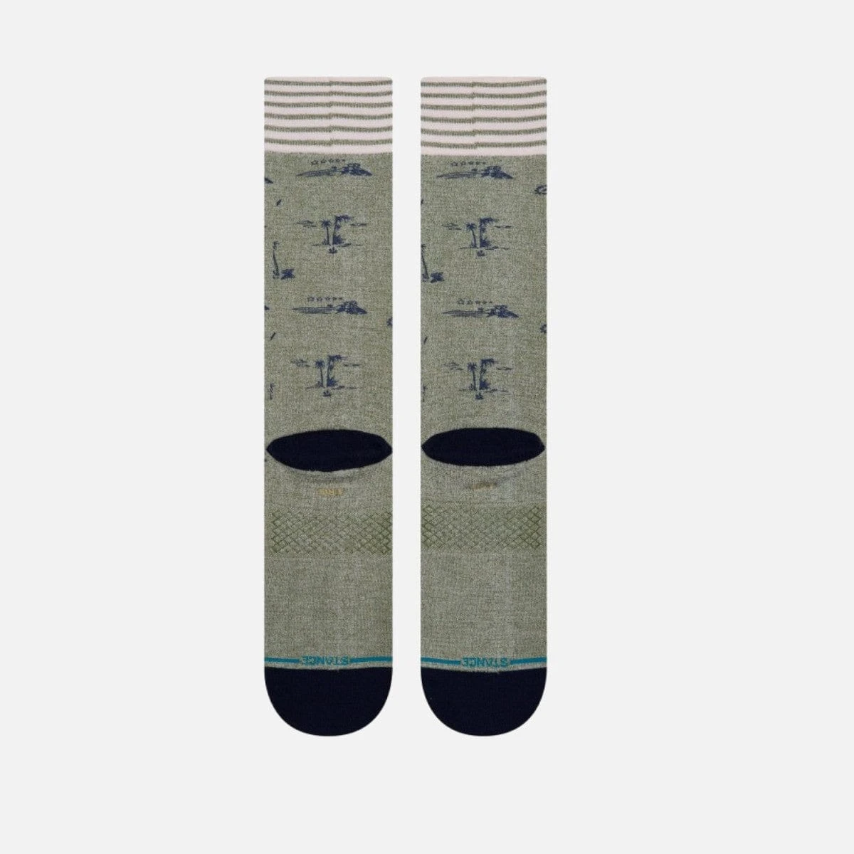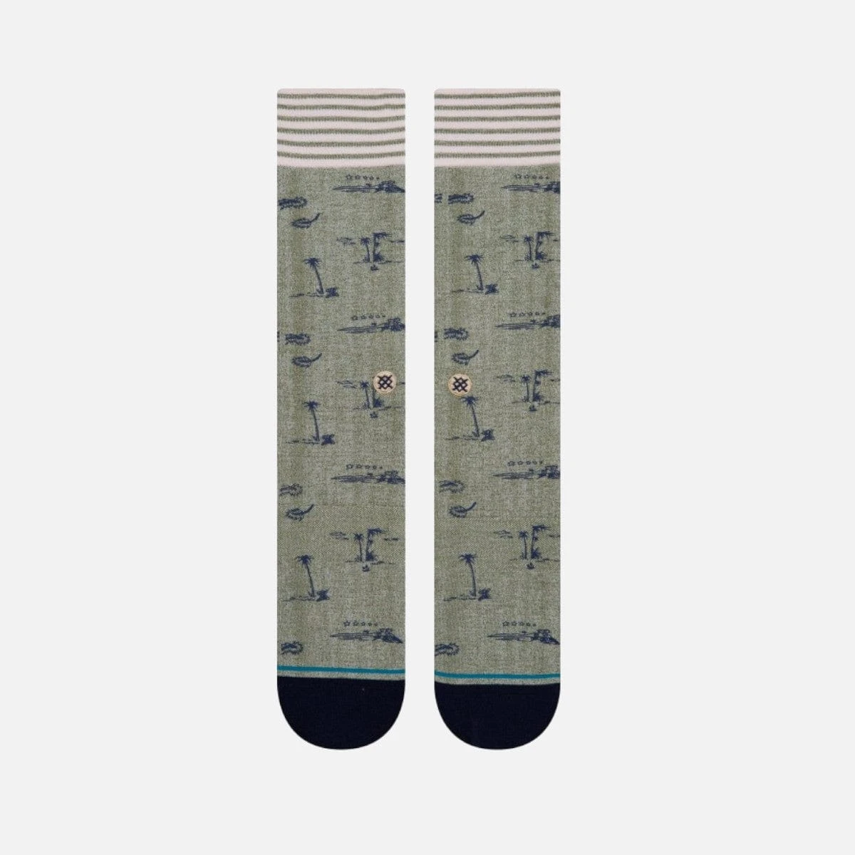 Hey Mon, jet off to the Isle Tropics in the superior softness of this Infinknit-clad Butter Blend beauty. Complete with a little ultralight cushion, the water’s just right. With a natural green colorway, these Stance crew socks are sure to keep you comfy. The lifestyle socks maximize comfort using a much softer, stronger and smoother type of cotton than any other socks. Constructed with the concept of additional comfort for your feet, the socks feature extra cushioning and provide a some-what thick pair of socks while still offering maximum breathability.