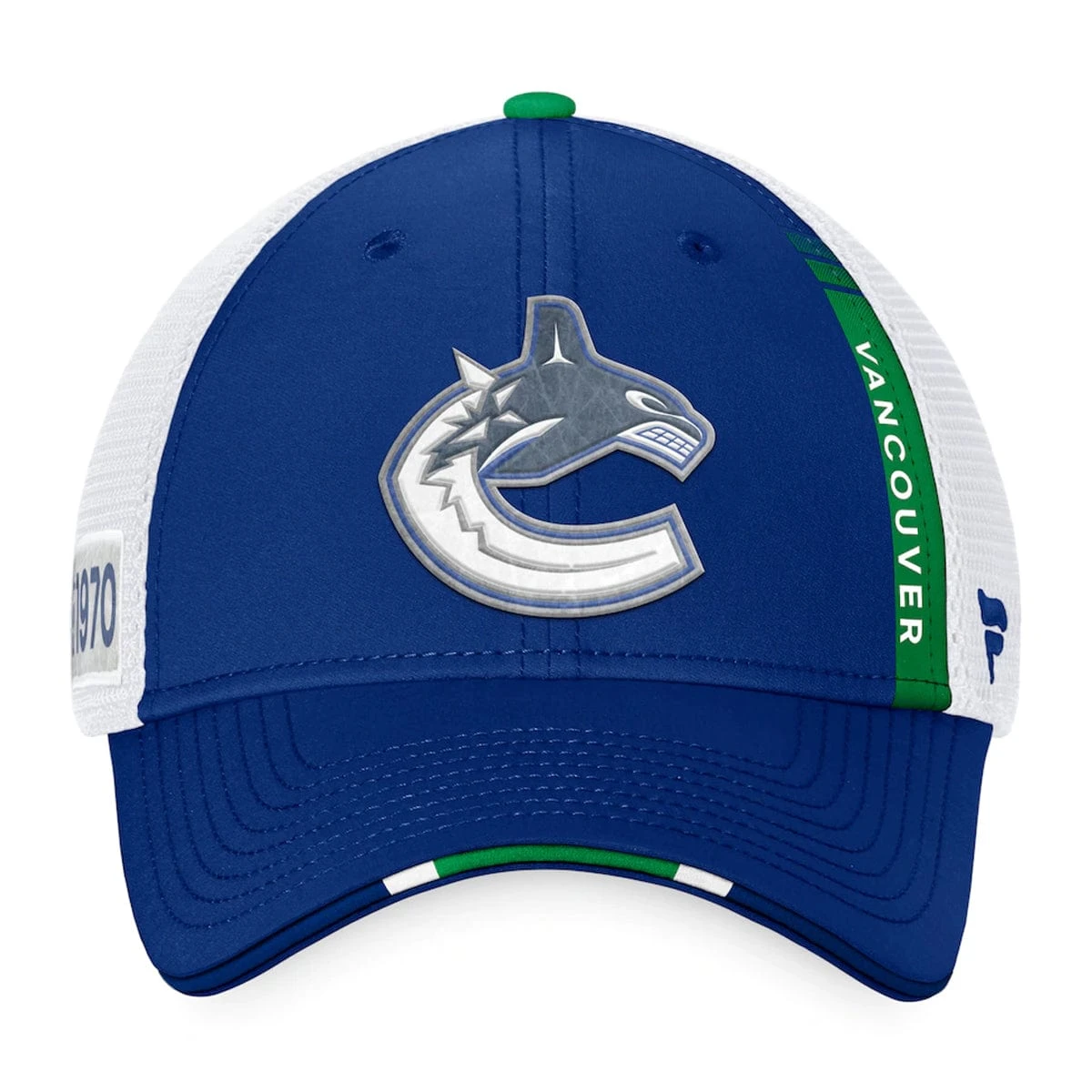 Get excited for the upcoming season as the Vancouver Canucks add fresh, new talent to their lineup by grabbing this 2022 NHL Draft Authentic Pro On Stage Trucker Adjustable Hat. Its high crown adds style while its mesh panels add ventilation, keeping you comfortable all day long. This Fanatics Branded gear sports the same design and Vancouver Canucks graphics that the players will be wearing during the draft, ensuring that you always look and feel like the real deal.